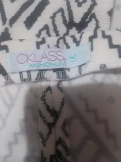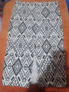 Falda abajo de la rodillaColor blanco y negroCon resorte en la cintura y abertura en la parte trasera No tiene ningún detalle, solo se uso una vez