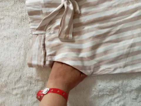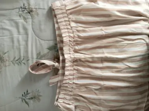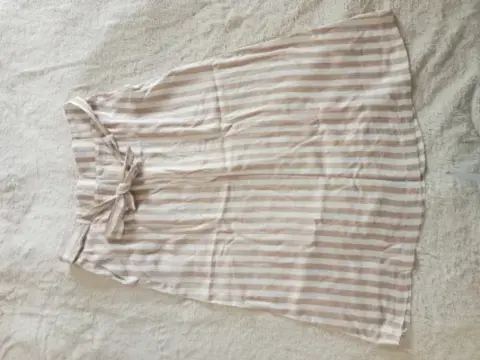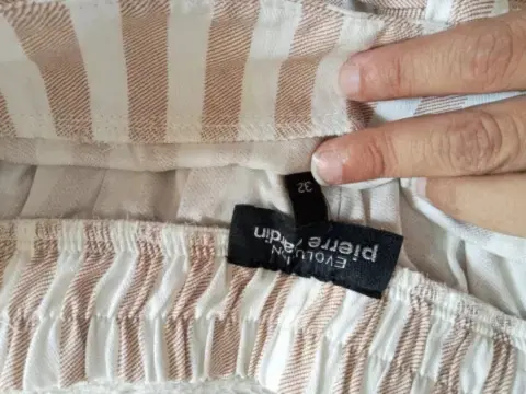 Falda Pierre Cardin de algodón, talla 32.Color blanca con líneas beige.2 Bolsas enfrente, resorte en cintura con cinturón.