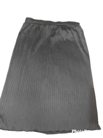 Falda plisada negra. De tela suavecita, tipo midi, plisado pequeño y resorte en la cintura