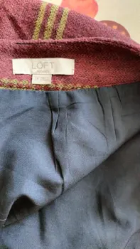 Falda rayada Loft. Preciosa falda rayada de colores, tela de lana, forro de poliéster, cierre en la parte trasera.A pesar de ser corta es calientita, la tela frontal simula ser envolvente pero no se abre, ya q va cosida del costado como se puede ver en las fotos. Su corte es ligeramente en "A"L:45C:35Termina en ancho de 47Esta en perfecto estado, su cierre funciona bien