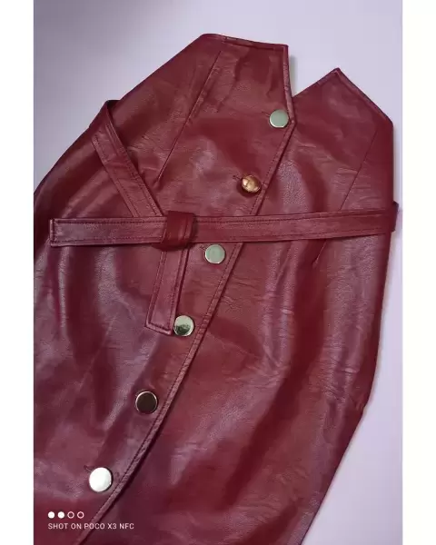 ❤️ Falda roja vinipiel 💋. 💋 Falda de vinipiel, con botones dorados enfrente, cinta para ajustar la cintura, .MedidasCintura 73 cmCadera 43 cmLargo 59 cmNo estiraNota: En las fotos parece manchada por la luz, pero NO tiene manchas, es nueva sin etiqueta sin detalles, está en perfectas condiciones.