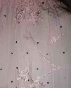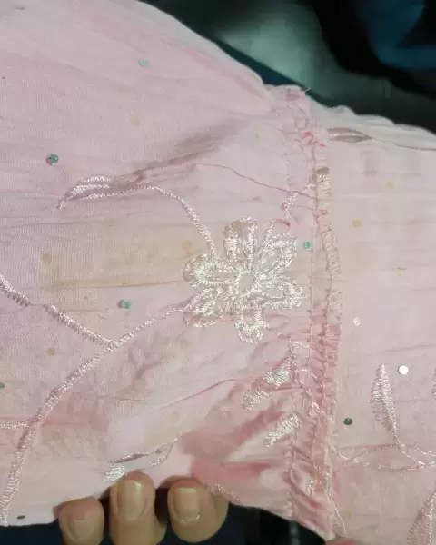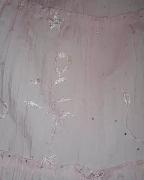 Falda corte en AColor: Rosa con detalles de lentejuela salpicados y bordados en rosa por lo que de lejos se aprecian poco, anexo foto mas cercaTalla: UnitallaMedidas: *Cintura , es resorte y se ajusta de 25 cm a max 45 cm.*Largo de 62 cm.No trae bolsasEs tela delgadaTrae un manchón pero no se nota mucho y manchitas beige del pegamento de la lentejuela caida, ultima fotoCupón: JanMoPBn0H