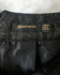 Falda STRADIVARIUS. Falda con tablitas, es negra con tonos plateados, perfecta para llevar en cualquier época.
