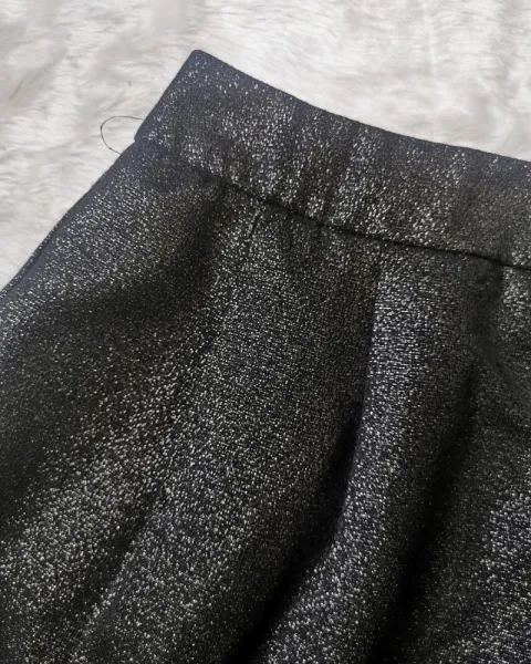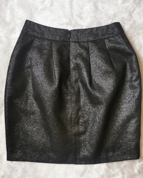 Falda con tablitas, es negra con tonos plateados, perfecta para llevar en cualquier época.