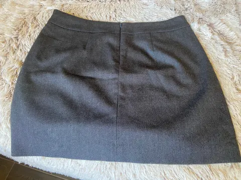 Falda súper linda. Súper padre en color gris tela un poco gruesa con forro bolsas al frente con botón de repuesto en perfectas condiciones Medidas cintura 43cm, cadera 52cm y largo 43cm