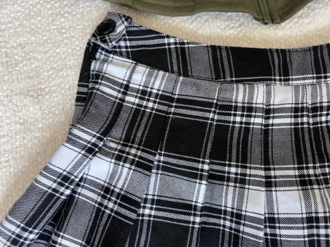 falda tableada. talla: mediana medidas: cintura 68 cm, cadera 102 cm, largo 41 cm
