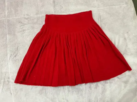 Falda tableada roja , tipo estambre , marca europea , tiene un vuelo muy padre , versátil y cómoda