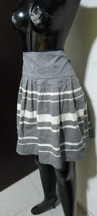 Falda tableda gris rallado fresca y elegante. Gracias por tu visita ..En esta ocasión te traemos:..................................................................................TALLA 8MARCA ANN TAYLORCOLOR GRIS CON BLANCOSTRECH NOTELA ALGODONMADE IN VIETNAMMEDIDAS CINTURA 42 CM CADERA 52 CM LARGO 52 CM Las medidas son de lado a lado de la prenda