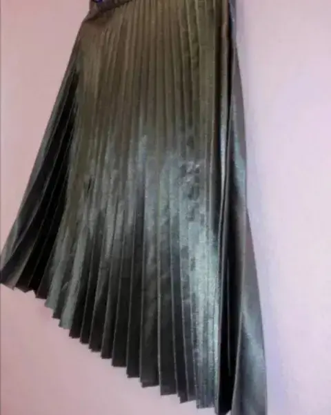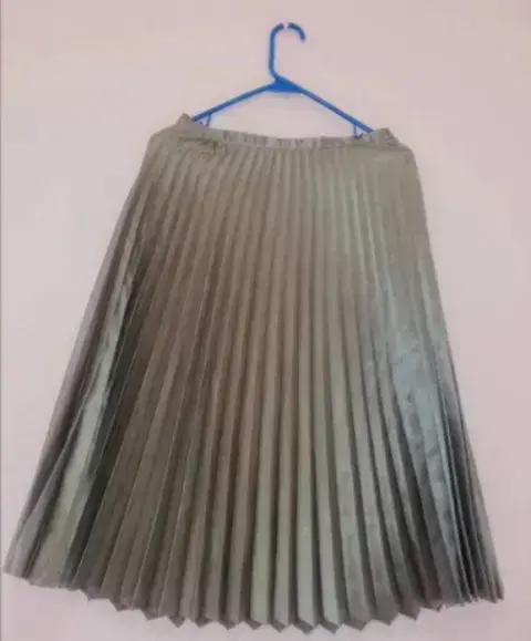 Bella falda súper trend para un look formal con zapatillas o casual con tennis.Banana Republic en color plateada satinada dice talla S,M,L....La vendó por que me quedó grande de la cintura medidas 37 cm cintura y 73 de largo. Sin usó
