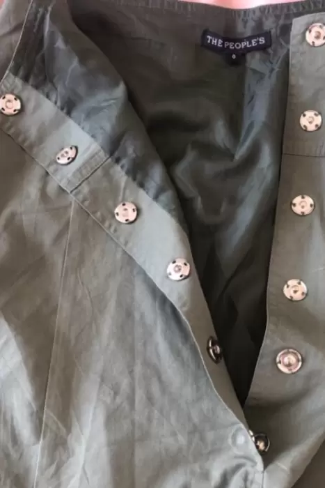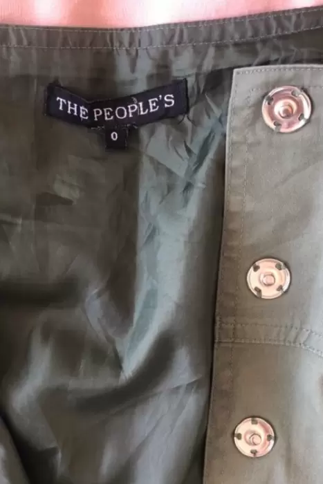 Falda THE PEOPLE’S. Linda falda verde militar, tiene broches ocultos en frente , es corte A.Medidas :Cintura 35Largo 60