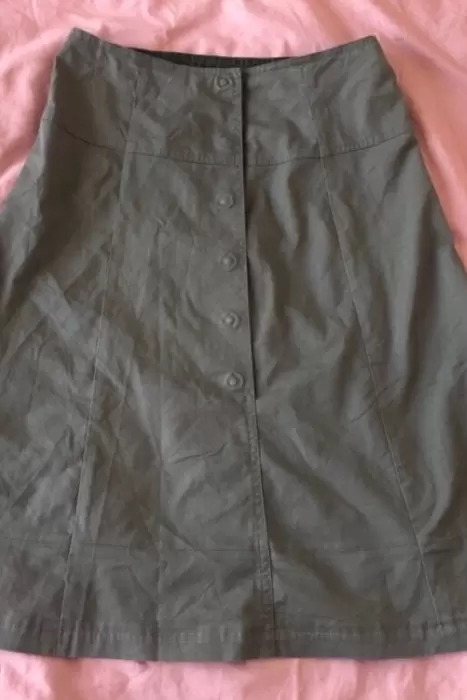 Linda falda verde militar, tiene broches ocultos en frente , es corte A.Medidas :Cintura 35Largo 60
