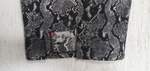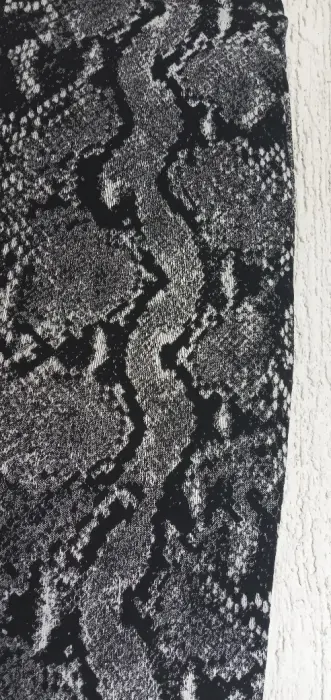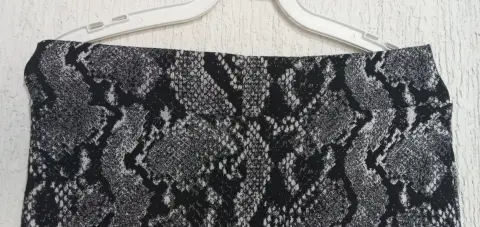 Animal print negro con blanco, tipo expandex, abertura por la parte de atrás, 35 cm de cintura, 66 cm de largo.