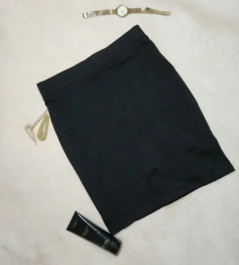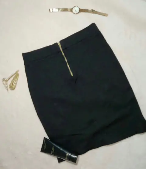 Falda tubo a la cintura talla S queda a M, es tela elástica pero bastante gruesa, la puedes utilizar para eventos tanto formales como casual.Largo: 46 cmCintura: 67 - 74 cm