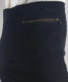 60 Falda tubo bolsa simulada en costado. Doble abertura trasera. Cierre con cremallera y broche de gancho. Color Negro. Composición: 98% Algodón, 2% Spandex. Forro 100% Poliéster. Medidas: Cintura 36 - Cadera 47 - Largo 58 cm. Sin detalles, puesta solo una vez.