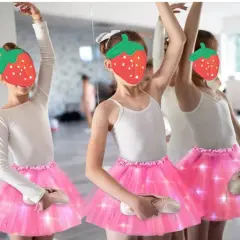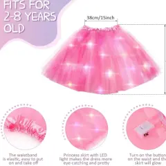 FALDA TUTU CON LUZ LED. falda tutú LED rosas para niñas, falda tutú de tul iluminada, brillante, esponjosa, disfraz de fiesta para baby shower, día de San Valentín, 3 capas de tutú de hada rosa bailando, color rosa, mide cintura 60 cm sin estirar, largo 40 cm
