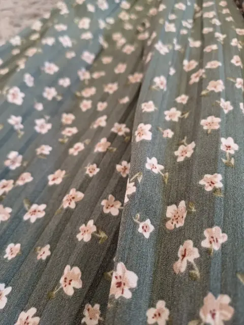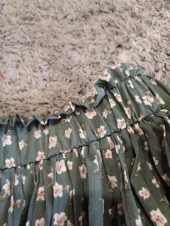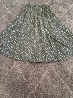 Hermosa faldita de color verde con estampado de florecitas. La tela es liviana y súper fresca. Tiene resorte en cintura. No transparenta. 💚Medidas : cintura 39 cm, largo 85 cm.