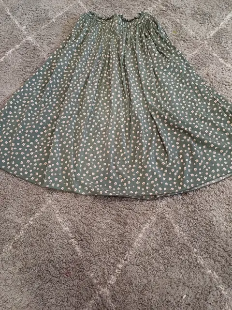 Falda verde con flores. Hermosa faldita de color verde con estampado de florecitas. La tela es liviana y súper fresca. Tiene resorte en cintura. No transparenta. 💚Medidas : cintura 39 cm, largo 85 cm.