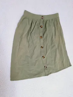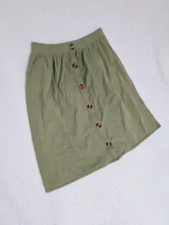 Falda Verde Talle Alto Con Botones, talla S, un poco decolorada por sol, no rota, usada poco.Medidas:Cintura 34cm no estiraLargo 55cm