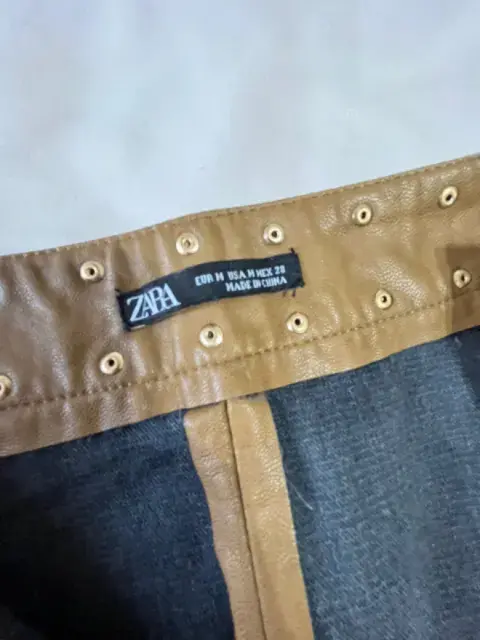 Falda vini piel. Falda café, imitación piel, con botones dorados, bolsas al frente.