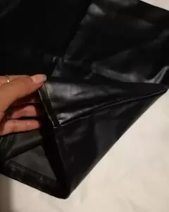 Falda de vinipiel, color negra, semi brillosa, stretch, textura lisa, color intenso, tela delgada