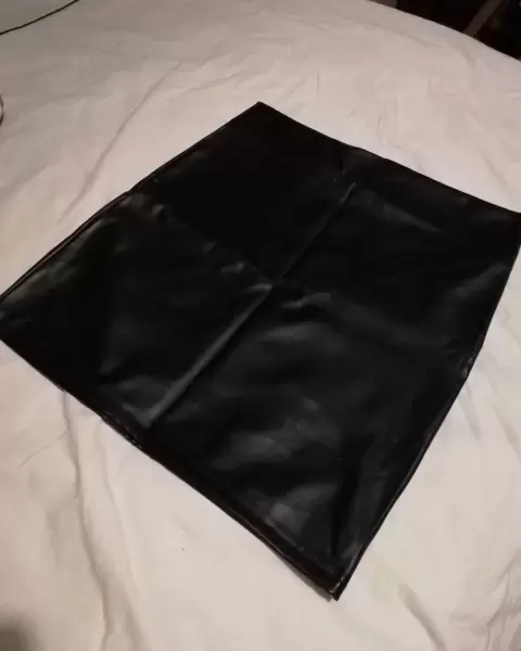 Falda vinipiel. Falda de vinipiel, color negra, semi brillosa, stretch, textura lisa, color intenso, tela delgada