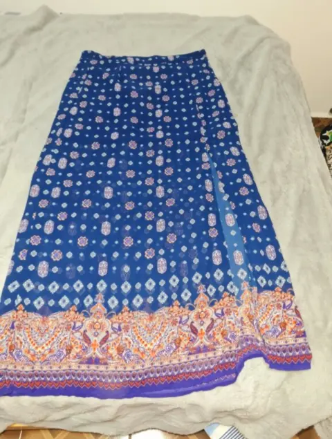 Falda vintage. FrescaLigeraViene con una falda corta de fondo para evitar transparenciasCon apertura a un costadoCon resorte en la parte trasera de la cinturaCintura 42cmCadera 51cmLargo 103cm