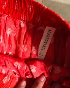 Faldita voladita coral con estampado blanco talla mediana marca aeropostal queda padrisima tiene un hilo negro parte de atrás que quedó de la etiqueta se puede quitar