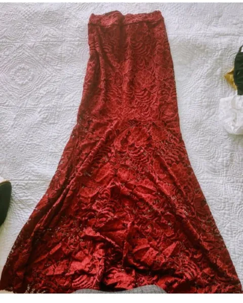 Falde de encaje color vino. Falda color vino, encuentra la sensualidad que estás buscando en esta hermosa falda de encaje, cuenta con una parte de abajo que deja a la imaginación unas hermosas piernas al entre asomarse en los encajes y por arriba te cubre con el forro interno.No lo pienses más. No tiene ningún detalle estético, en perfectas condiciones.