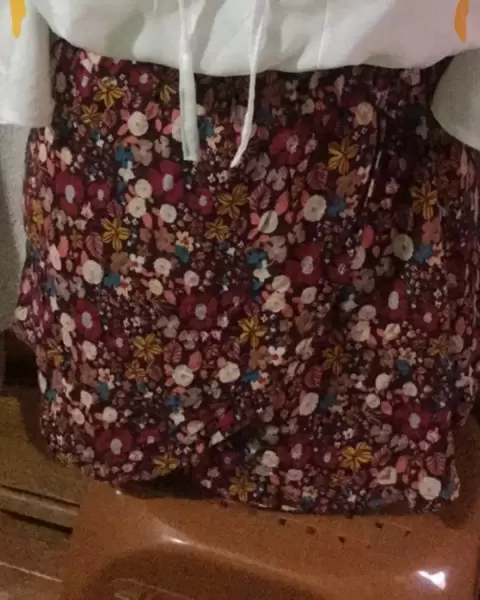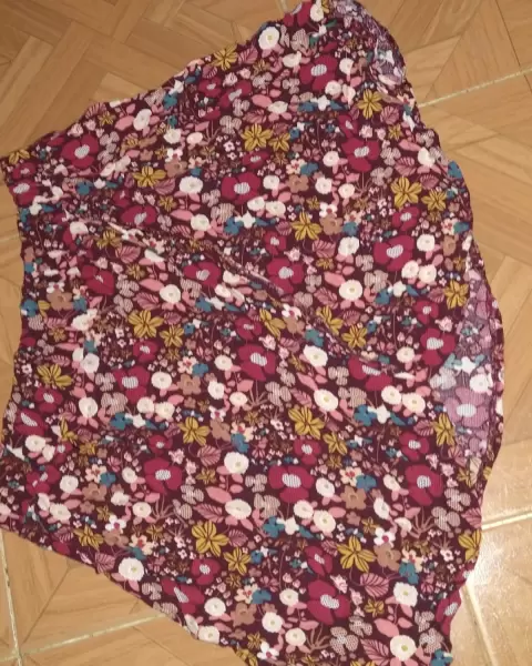 Hermosa faldita cruzada, floral, tela rayon chalis, talla chica, 40cm de largo aprox