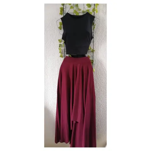 Maxi falda. Maxi falda con vuelo color vino, corta por delante y larga por atrás, tela brush unitalla ( no incluye blusa )