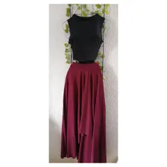 Maxi falda con vuelo color vino, corta por delante y larga por atrás, tela brush unitalla ( no incluye blusa )