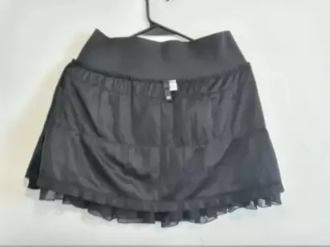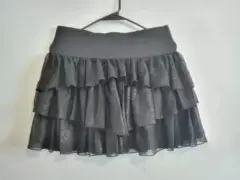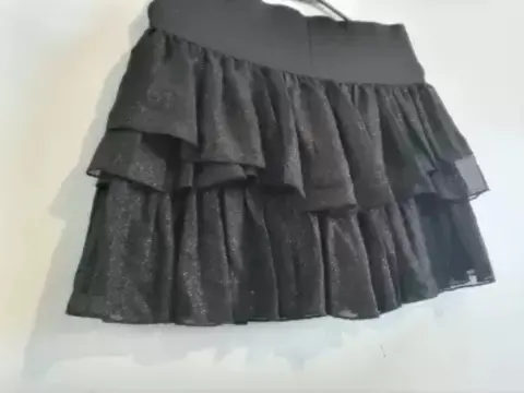 Falda de olanes en color negro, triple olán con contraste en dorado o brillitos dorados con cintura elástica de 9cm de ancho. . Estilo de la falda fiesta. Largo 38.5 cm Contorno cintura 75 cm . Composición 100% Poliéster Forro 100% Poliéster Cintura elástica 60%Poliéster y 40% Elastano.