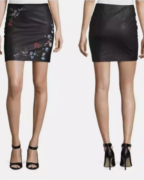 Mini Falda. Linda Falda cuero sintético ideal para un look urbano o casual ,,con suave bordados de flores