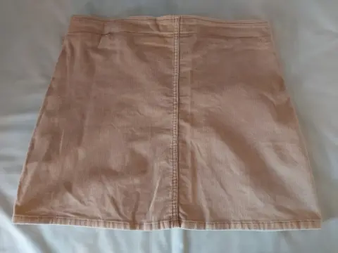 Falda color beige, uso casual o informal, tela tipo pana, ideal para otoño