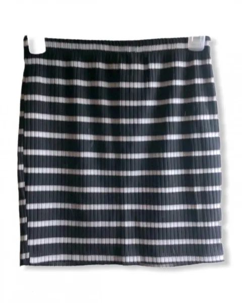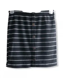 Mini falda canale rayas. Mini falda negra con líneas blancas canale, con botones en la parte frontal de la falda (solo están puestos, no son reales para abrochar/desabrochar)
