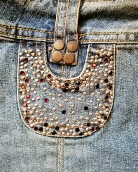 Mini Falda de mezclilla, estoperol es y cuentas