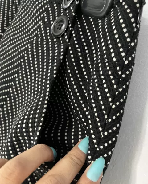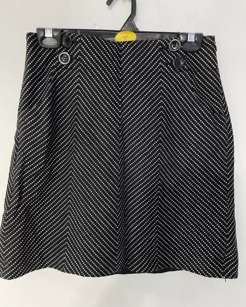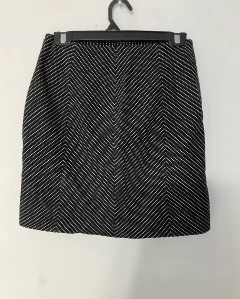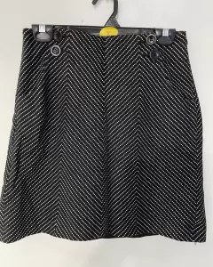 Mini falda de tela gruesa color negro con bolsas y botones talla 0, yo soy talla 7 y me queda perfectamente.