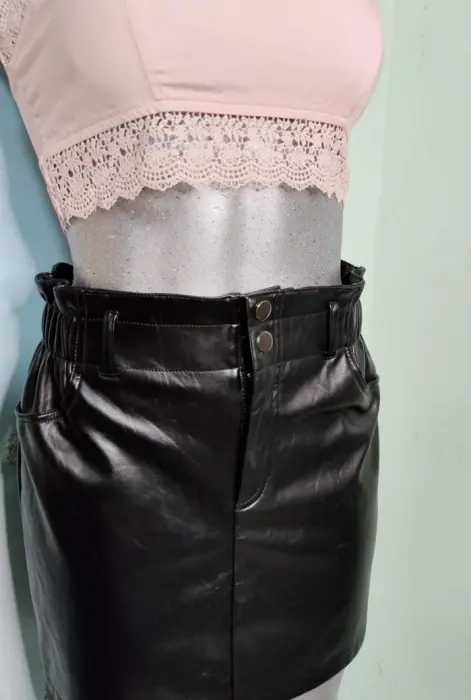 Mini Falda Vinipiel. Falda tipo vinipiel 🖤 Talla L Básica y súper cómoda Con resorte, espacio para cinturón, cierre y botones al frente Medidas: Cintura 82cm - Largo 45cm ¡Contamos con sistema de apartado! 🥰 Mándanos mensaje o déjanos un comentario en esta publicación y será tuya