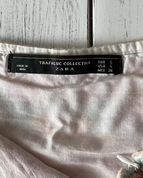 Minifalda beige con bordado Zara. Falda con forro beige y bordado en parte superior, tipo manta, suave, cierre lateral. NO ESTIRA VER MEDIDAS. No tiene bolsillos. Algunos hilos pueden estar salidos y se remendó un poco de la bastilla.Talla: S Medidas: 36 cm cintura, 41 cm cadera y 39 cm de largo. NO ESTIRA.