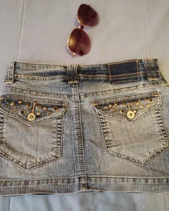 Minifalda de mezclilla. Descripción:En muy buen estado, etiquetada como talla 7 pero en realidad es para alguien muy delgadita, talla 5. De largo mide 27 y 32 de ancho
