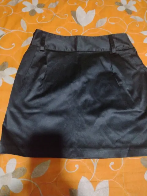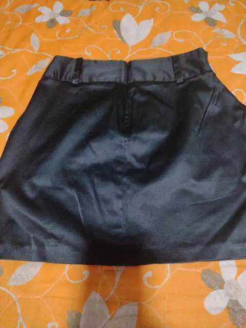 Minifalda negra talla S/M. Minifalda negra tela hermosa no sé si es razo,es brillosa,tiene bolsas a los costados,dice talla 11 pero da a una talla S/M , está hermosa