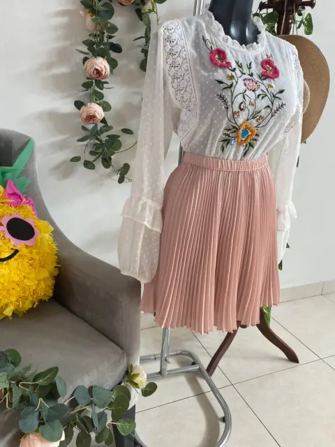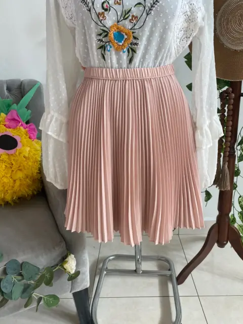 Preciosa, súper femenina & coqueta, mini falda plisada Banana Republic. Color: rosa pastel. Cintura alta (con resorte •buen stretch• para mejor fit). Talla 0P. •⊹٭𝐌𝐞𝐝𝐢𝐝𝐚𝐬:٭⊹•Cintura 30-38 cmCadera 47 cmLargo 43 cm.🧵 100% poliéster 🪡