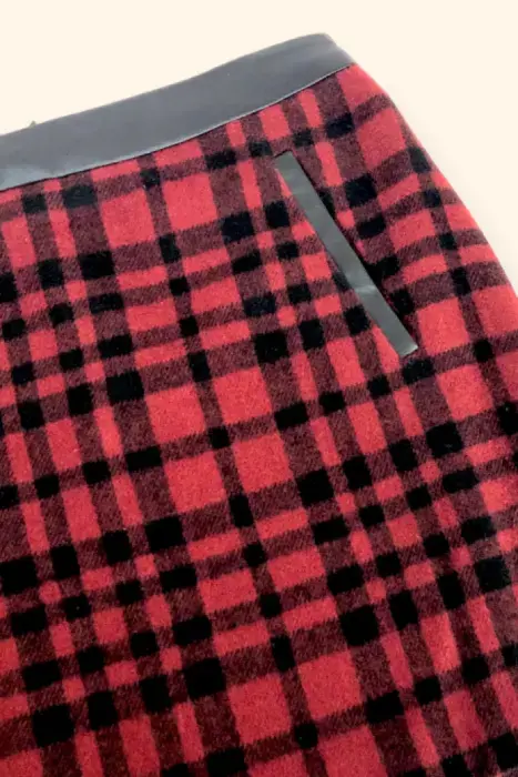 Minifalda a cuadros en color rojo y negro de tela con piel sintética en la cintura u en los vivos de las bolsas, está preciosa mis Pinky Lovers esta faldita tiene que irse directo a tu clóset!😉👉Obtén 10% de descuento con mi código: Pinky