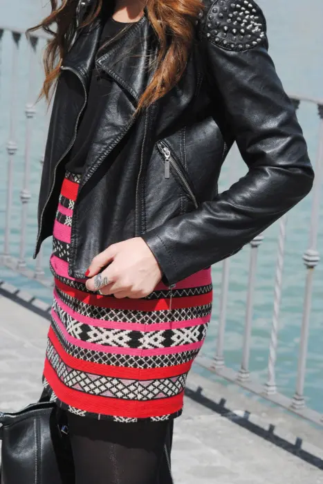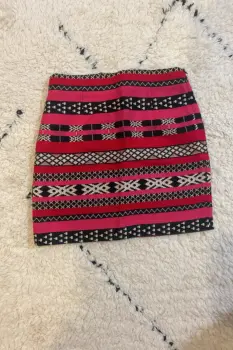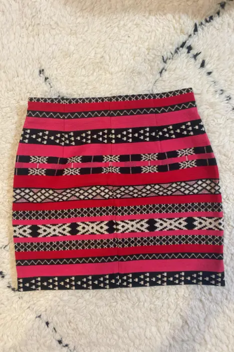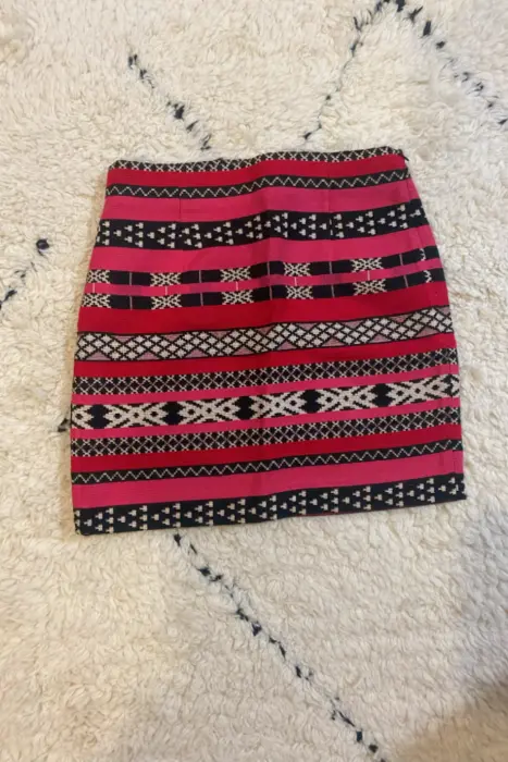Minifalda Zara rojo rosa negro. Minifalda ZARA WOMAN boho chic, tela preciosa, étnica.Cierre lateral invisible