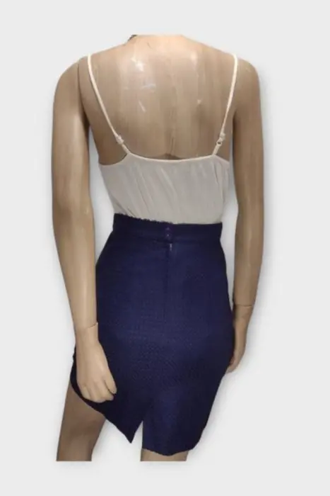RAMPAGE Falda Dama Rayón Azul M XS 5. RAMPAGE Falda Dama Rayón Azul M XS 5Falda marca RAMPAGE en color azul marino 60% Rayón 40% PolyesterMarca: RAMPAGEOrigen: USAMaterial: 60% Rayón 40% PolyesterTalla: XS - 5Estilo: Casual, FormalPatrón: LápizColor: Azul MarinoCierre: Cremallera y BotónCintura: 33 cmCadera: 45 cmLargo: 49 cmTiro: BajoRopa de USO en muy buen estado