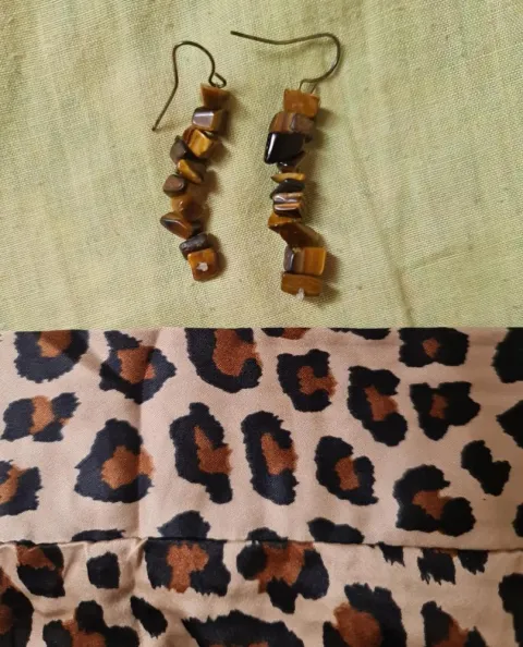 Sexy faldita en estampado animal! tela sintetica tipo polyester fresca toque satinado opaco.pretina con resorte en parte de atras y pretina lisa al frente.medidas :51 ancho x 41cm largo/talla: s/m nueva!!aretes piedra ojo de tigre de regalo!!!!