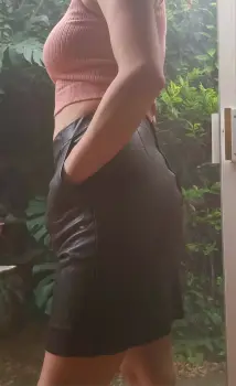 Sexy falda negra. Talla SEs de piel sintética con bolsas a los costados, el forro de las bolsas es 100% poliester. Cierre en la parte trasera con botón de seguridad. Tiene pinzas doble adelante y atrás.Medida cintura 77cm.Medida cadera 89cm.Largo falda 43cm.