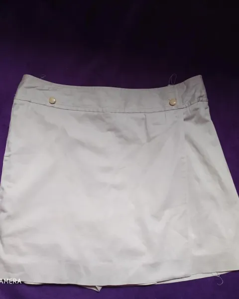 Short falda, con abertura de un lado, color beige, muy bonita, el unico detalle son dos pinzas en la parte de atras, medidas de 34 cm cintura y largo 36 cm
