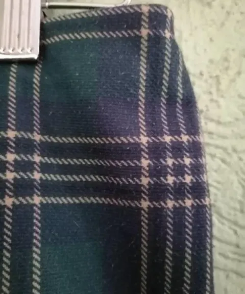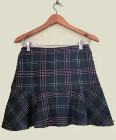 Falda corta, con estampado escocés, olanes, verde con azul marino, tela stretch. Detalles de uso en foto 5