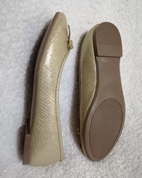 Zapato Balerina o Flats doradas, color oro textura piel de Reptil, de meter el pie, Ligeros. Mexicano Acomoda Número #25cm. Pregúntame o visita mi clóset para más modelos y númeración. Aplica mi código y tu primer compra en la App tiene descuento.
